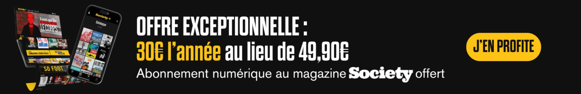 Bonjour, je m’appelle Society + et je suis une plateforme de documentaires créée par le magazine Society. Cela signifie que je suis un endroit où vous pourrez trouver des films et des séries, sauf qu’ici, tout ce que vous verrez s’est réellement passé dans la vraie vie. J’ai été créée par le groupe So Press, qui publie Society mais aussi, entre autres, So Foot, So Good ou Tsugi. Les documentaires que vous trouverez chez moi racontent le monde à la manière de tous ces médias : avec des histoires fortes, incarnées, et qui disent toujours beaucoup plus que ce que leur pitch pourrait laisser croire. Des histoires de politique, de société, de sport, de crime, d’engagement, venues du monde entier et de toutes les époques, que vous découvrirez pour 4,90 euros par mois. Et devinez quoi : pour ce prix, je vous offre aussi un abonnement numérique à Society.