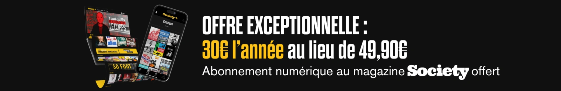 Bonjour, je m’appelle Society + et je suis une plateforme de documentaires créée par le magazine Society. Cela signifie que je suis un endroit où vous pourrez trouver des films et des séries, sauf qu’ici, tout ce que vous verrez s’est réellement passé dans la vraie vie. J’ai été créée par le groupe So Press, qui publie Society mais aussi, entre autres, So Foot, So Good ou Tsugi. Les documentaires que vous trouverez chez moi racontent le monde à la manière de tous ces médias : avec des histoires fortes, incarnées, et qui disent toujours beaucoup plus que ce que leur pitch pourrait laisser croire. Des histoires de politique, de société, de sport, de crime, d’engagement, venues du monde entier et de toutes les époques, que vous découvrirez pour 4,90 euros par mois. Et devinez quoi : pour ce prix, je vous offre aussi un abonnement numérique à Society.
